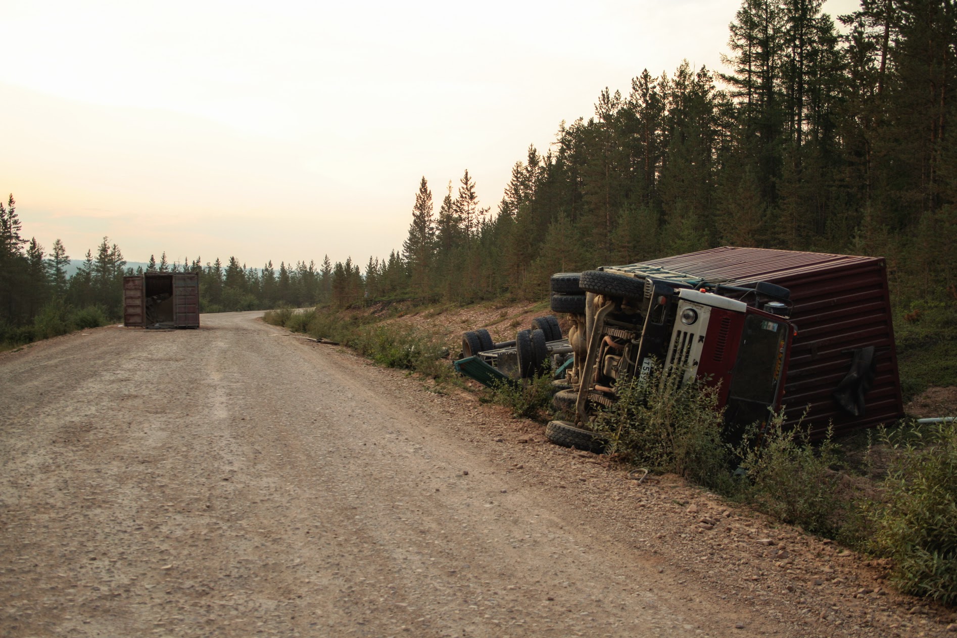 Где-то, как раз перед Улуу, обнаружили перевернувшийся КамАЗ с прицепом